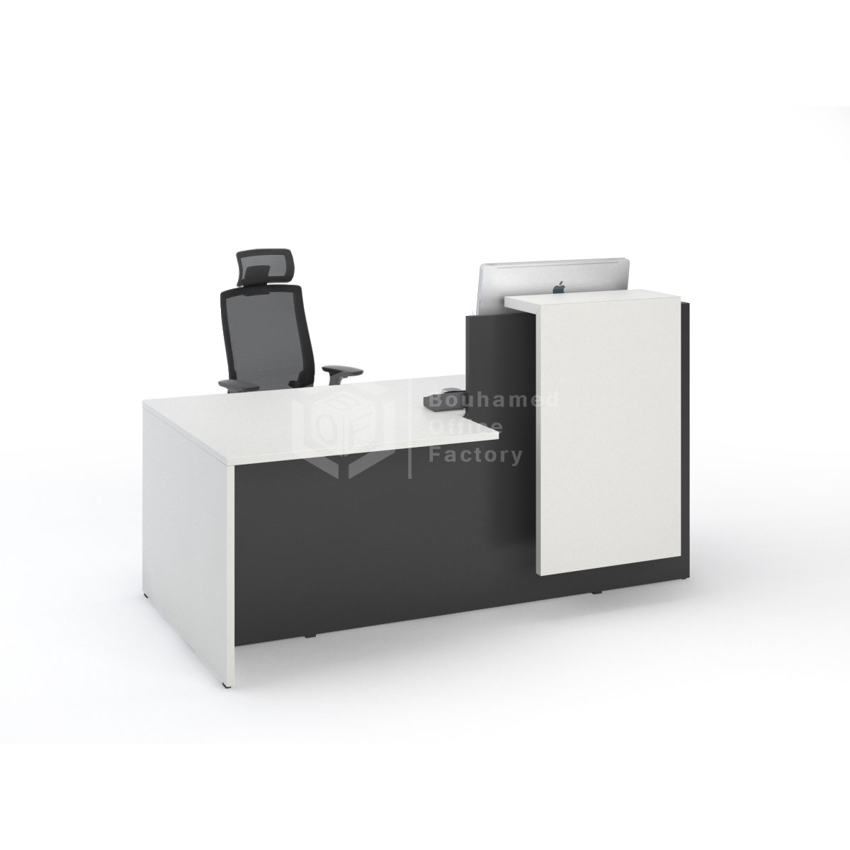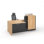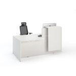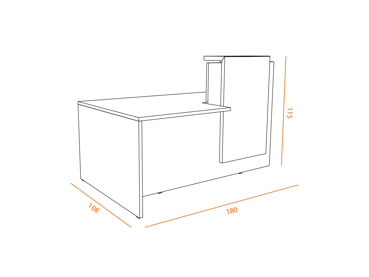 Le bureau JINX est une banque d’accueil compacte combinant un poste de travail individuel et un comptoir de réception bas, dont l’avancée de plateau permet l’accès des personnes à mobilité réduite . D’une dimension totale de 180 cm de large et 108 cm de profondeur,