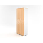 Les armoires à portes battantes BETA sont en bois mélaminé, équipées de serrure pour plus de confidentialité. L’ensemble des armoires est bicolore, ainsi le corps et les étagères sont proposés en coloris blanc, alors que les portes et le top sont disponibles dans tous les coloris bois des gammes opératives (voir nuancier).