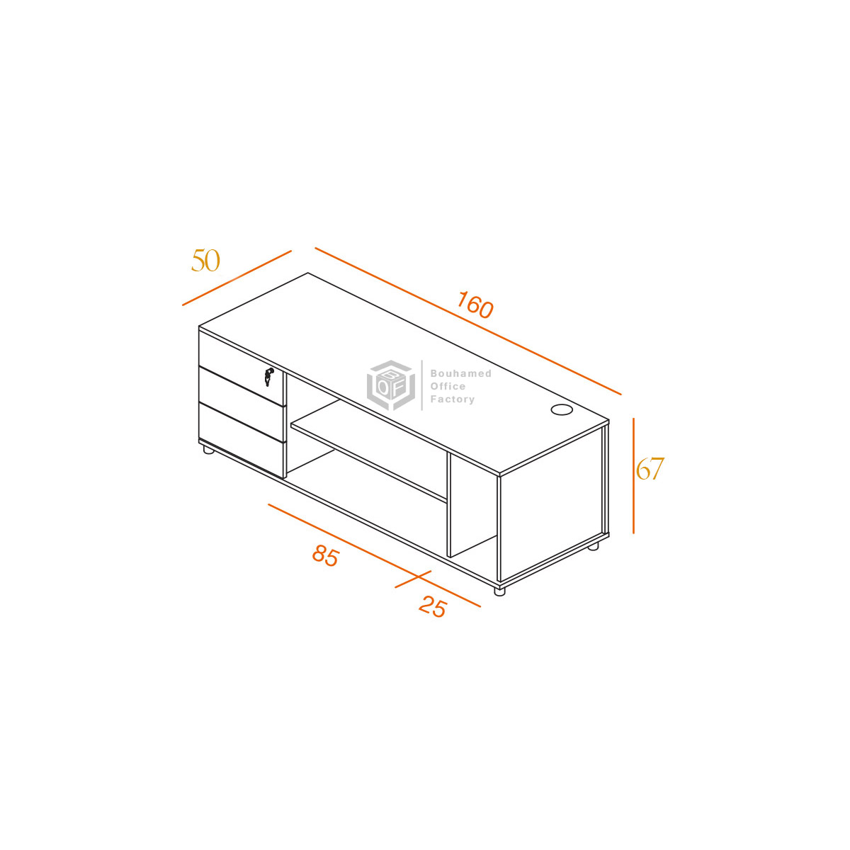 – 2 tiroirs (dont un pour dossiers suspendus) ou 3 tiroirs