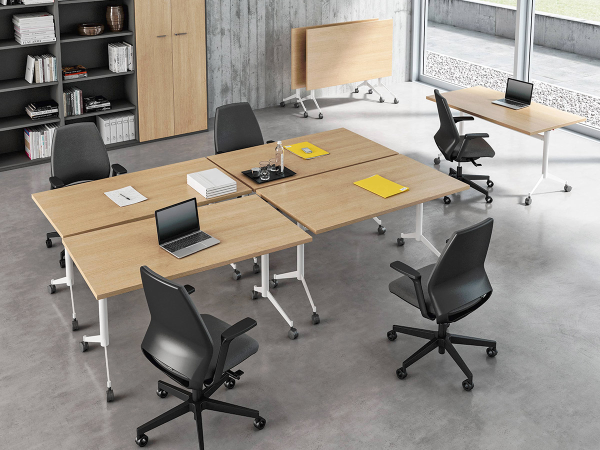 – Matière du plateau : aggloméré revêtu sur deux cotés avec papier de mélamine anti-rayures et antireflet; chants droits en ABS ép. 2 mm antichoc sur les 4 cotés assortis au plan. Densité panneau: 670/730 kg/m3